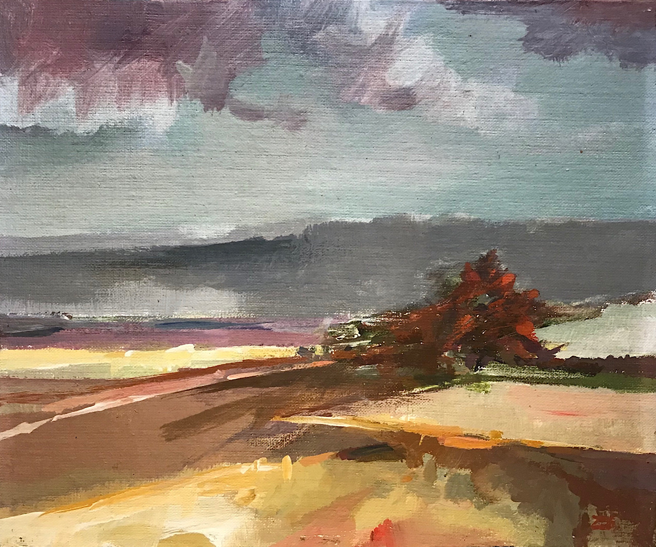 This wonderful plein-air composition by the contemporary Polish artist Zbigniew Kurkowski is a perfect example of his quick spontaneous brushwork. Here he has captured the dramatic sunlight effect on the landscape after a passing storm. The style and subject are very typical of his work in the early nineteen eighties.